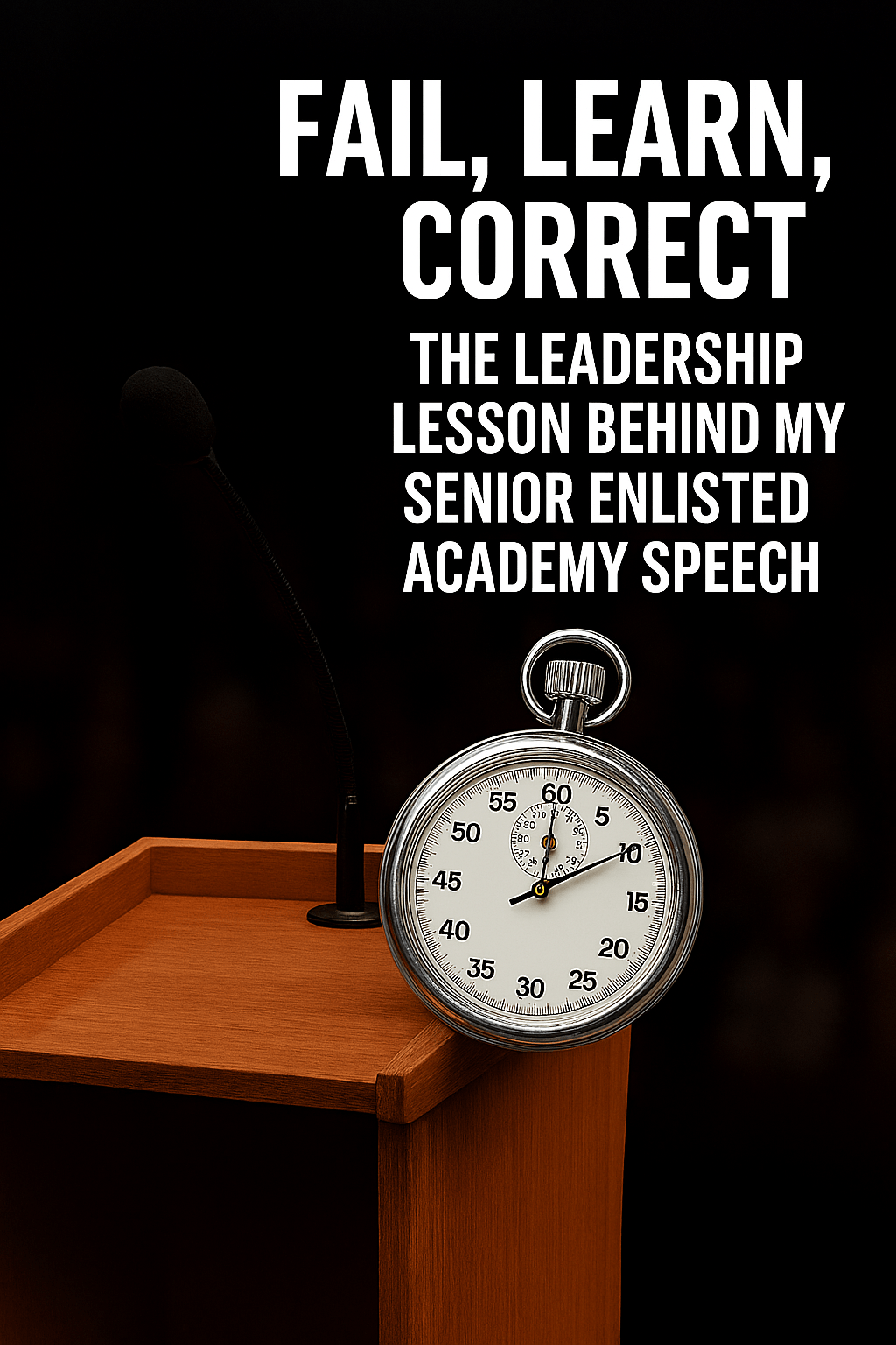At the Senior Enlisted Academy (SEA), I was tasked with delivering a speech on the U.S. Navy Heritage of Manning the Rails. The criteria were strict: 7–9 minutes, detailed, and professional. I had a week to prepare, but what I thought was preparation turned out to be misdirected effort. By the time I realized it,